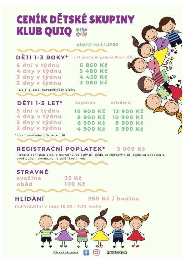 - V případě, že je dítě nemocné či jedete na dovolenou platíte stejně jako, když dítě dochází do DS. V případě, že je DS uzavřena (vyjma státních svátků) je školkovné poníženo o uzavřené dny.